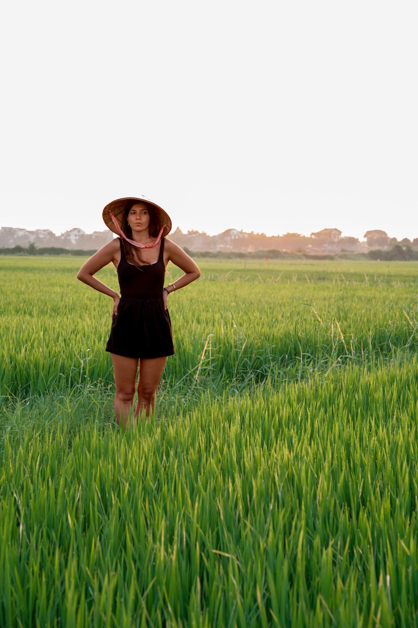 Une femme dans les rizières d’Hoi An au Vietnam