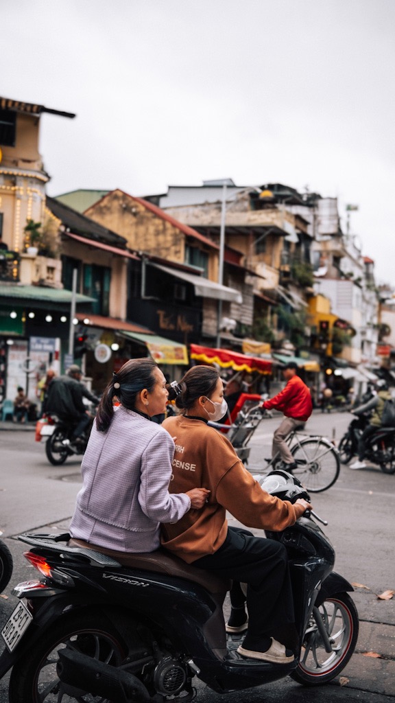Deux femmes en scooter à Hanoi au Vietnam